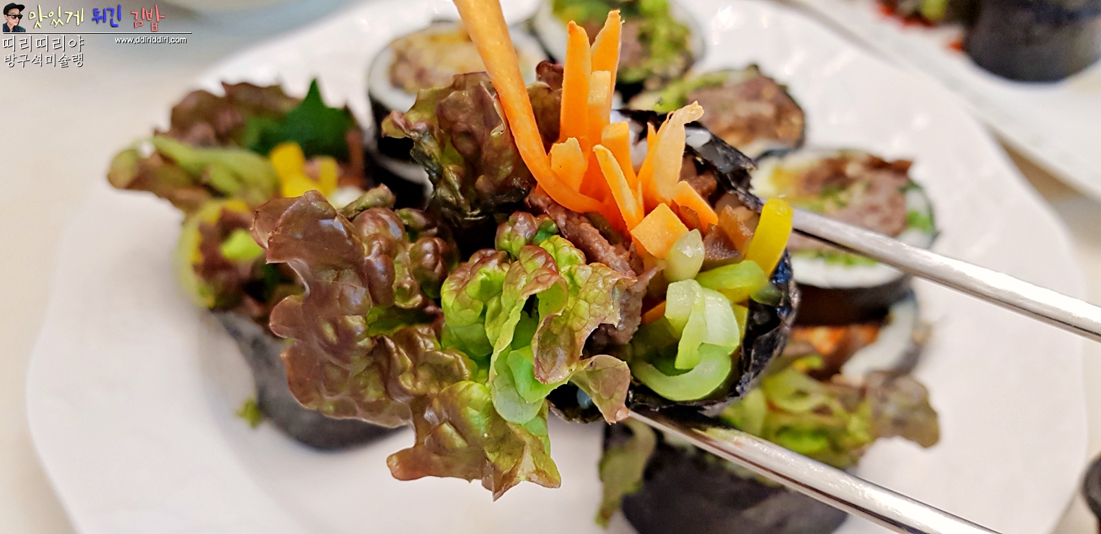 상추와 깻잎으로 한 쌈을 김밥으로 편하게 먹을 수 있는..ㅎㅎ 신박한 김밥~!